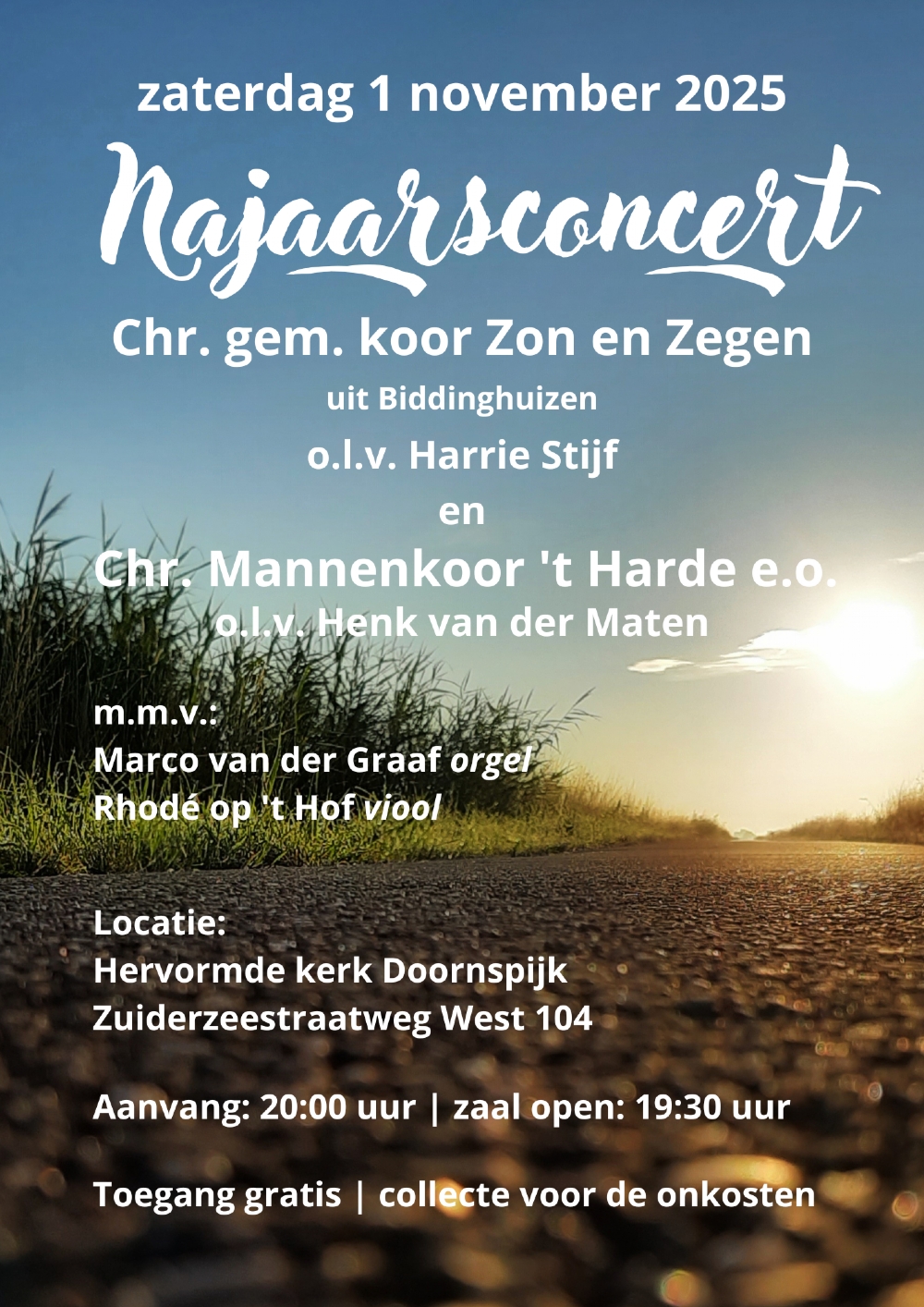 Lees het nieuwsberichtZon en Zegen repeteert op dinsdagavond van 19:45 - 21:45 uur in Kerkcentrum De Voorhof, Akkerhof 3, Biddinghuizen.